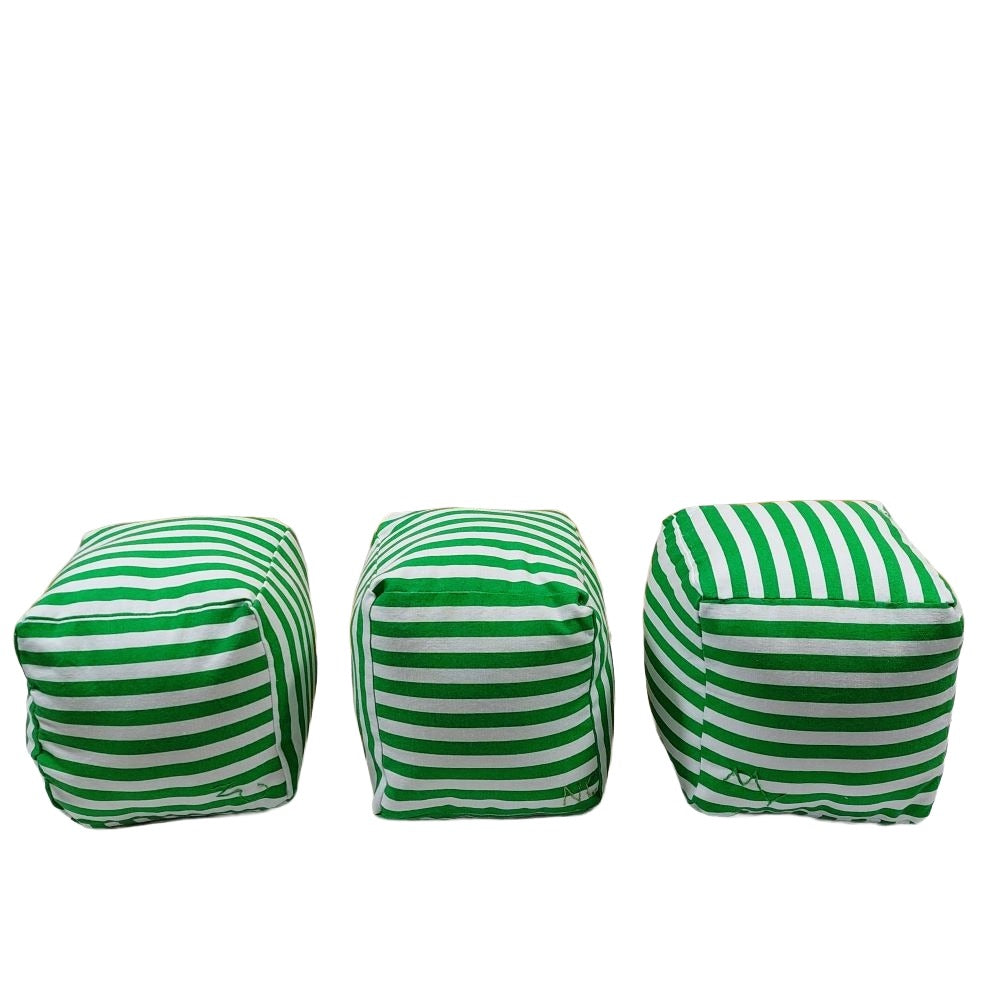 A Trio of Mini Pillow Cubes Green & White Stripes